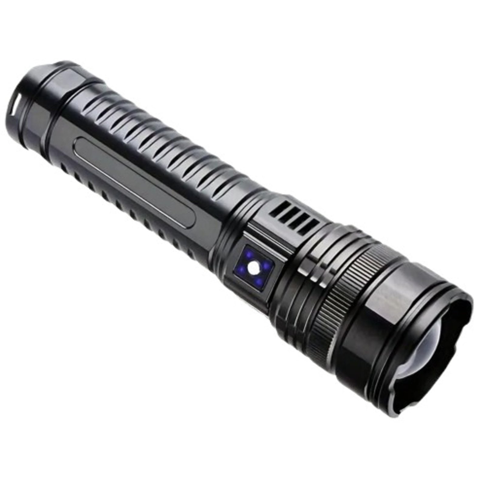 Lampe torche LED ultra-lumineuse, portée de 1000 m, puissante, tactique, rechargeable et zoomable, légère et fabriquée en matériaux de qualité.